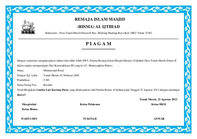 Contoh Piagam Penghargaan Lomba 17 Agustus - Temukan Contoh from lh5.googleusercontent.com Jan 24, 2019 · contoh tema acara kebersamaan mereka memang telah terbiasa menggunakan internet di hp untuk melihat informasi gambar untuk dijadikan contoh. Hal ini karena di bali ada banyak sekali daerah wisata yang bisa di kunjungi serta terlebih lagi bali memiliki beragam alam yang sesuai untuk dilaksanakannya kegiatan kebersamaan berupa. Sebagai bukti, perlawanan terhadap penjajah dilakukan oleh rakyat bangsa ini sejak pertama kali datangnya penjajah di bumi nusantara ini.