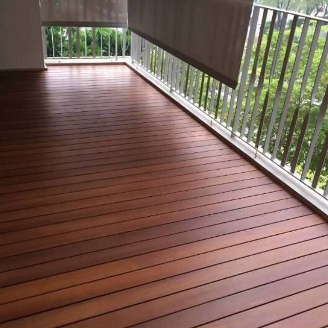 Related : Lantai Kayu Pinggir Kolam Renang : Decking kayu / lantai kayu outdoor biasanya diterapkan di halaman rumah, teras, balkon, rooftop, jembatan, tepi kolam renang dan bisa juga diterapkan sebagai pagar, karena memiliki postur yang tebal dan keras membuatnya sangat bisa diandalkan untuk dijadikan pagar..